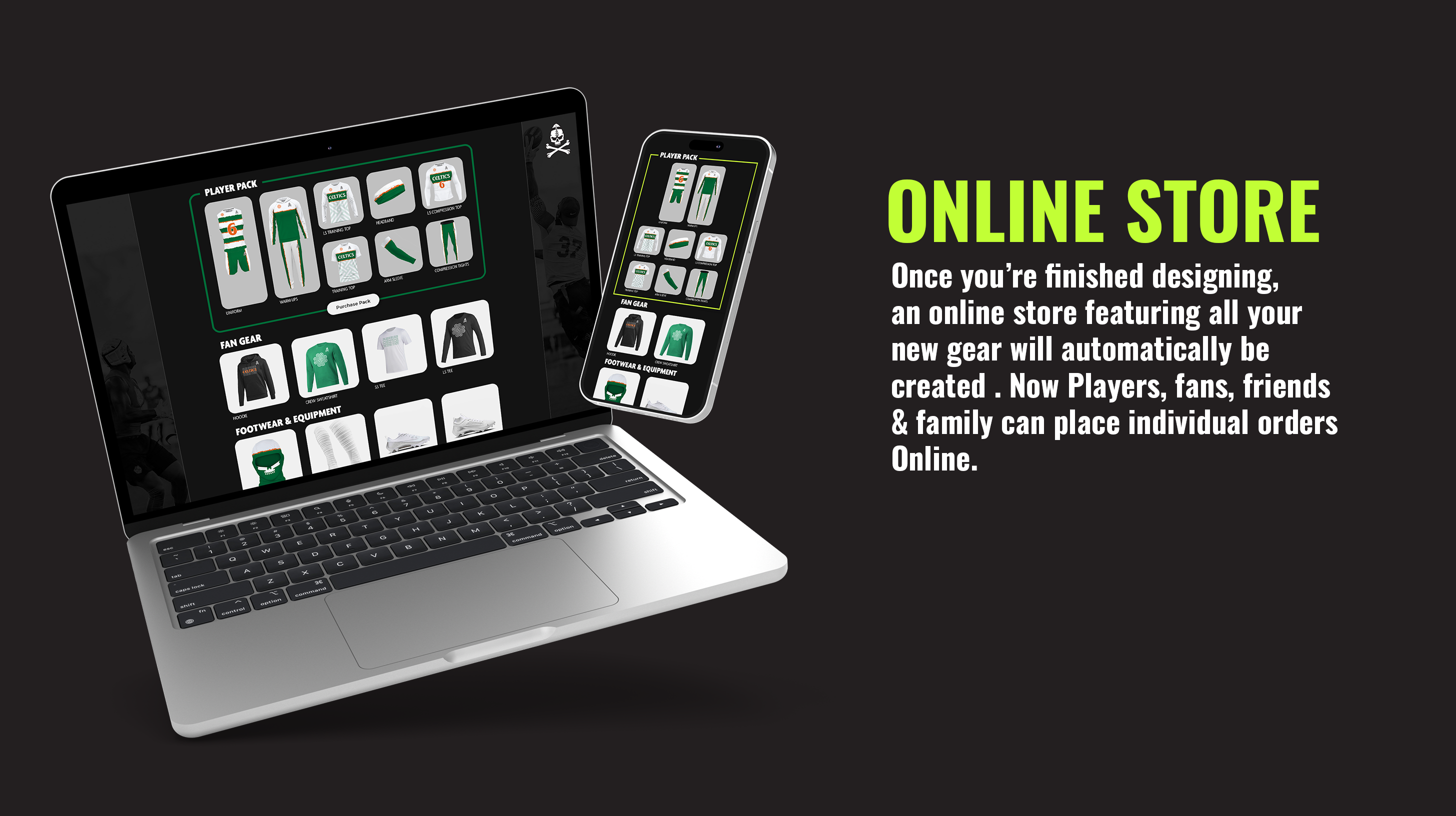 Design everything your team wears on game day. Fully customize your uniform and see what it looks like on a player instantly.